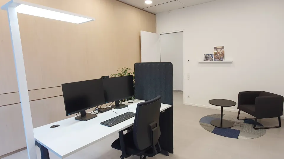 Die Buchung erfolgt über ein Onlineportal. Den Link zum Buchungsportal finden Sie oben rechts auf dieser Webseite. Bei der ersten Buchung wird ein Benutzerkonto für den Mitgliederbereich des Buchungsportals angelegt. Bitte verwenden Sie dafür Ihre dienstliche E-Mailadresse. Sobald Sie dann einen Arbeitsplatz oder einen Besprechungsraum gebucht haben, erhalten Sie per E-Mail eine Buchungsbestätigung mit weiterführenden Informationen zur Nutzung des CoWorking Spaces.